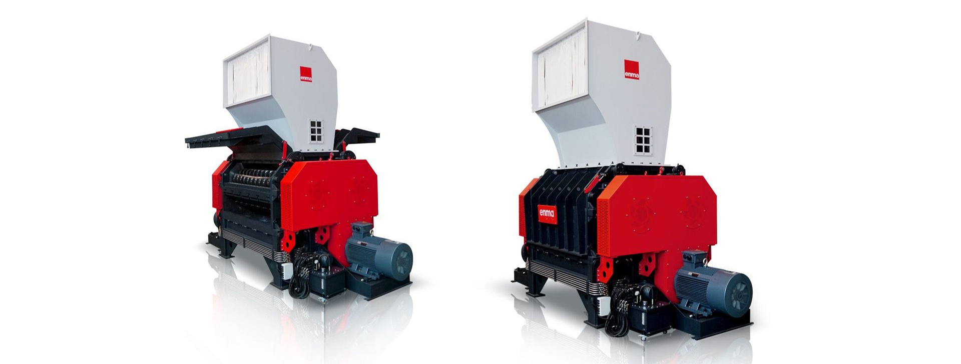 EnMa SG series two-shaft shredder+granulator two-in-one machine can recycle all kinds of plastics, films, larger plastic blocks or extra-large containers, all of which can be cut to small particles for further processing.